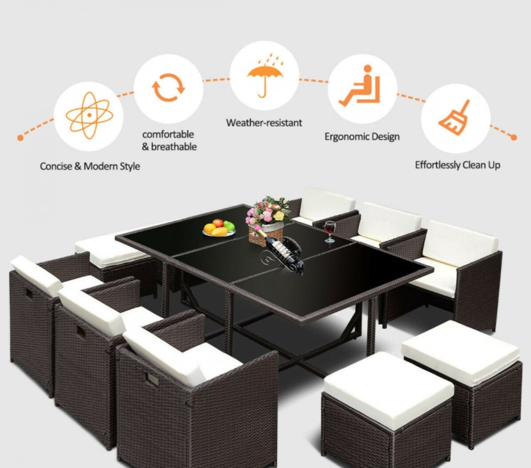 This 11-piece dinning seat is excellent for outdoor garden, park, patio, poolside, porch and yard.