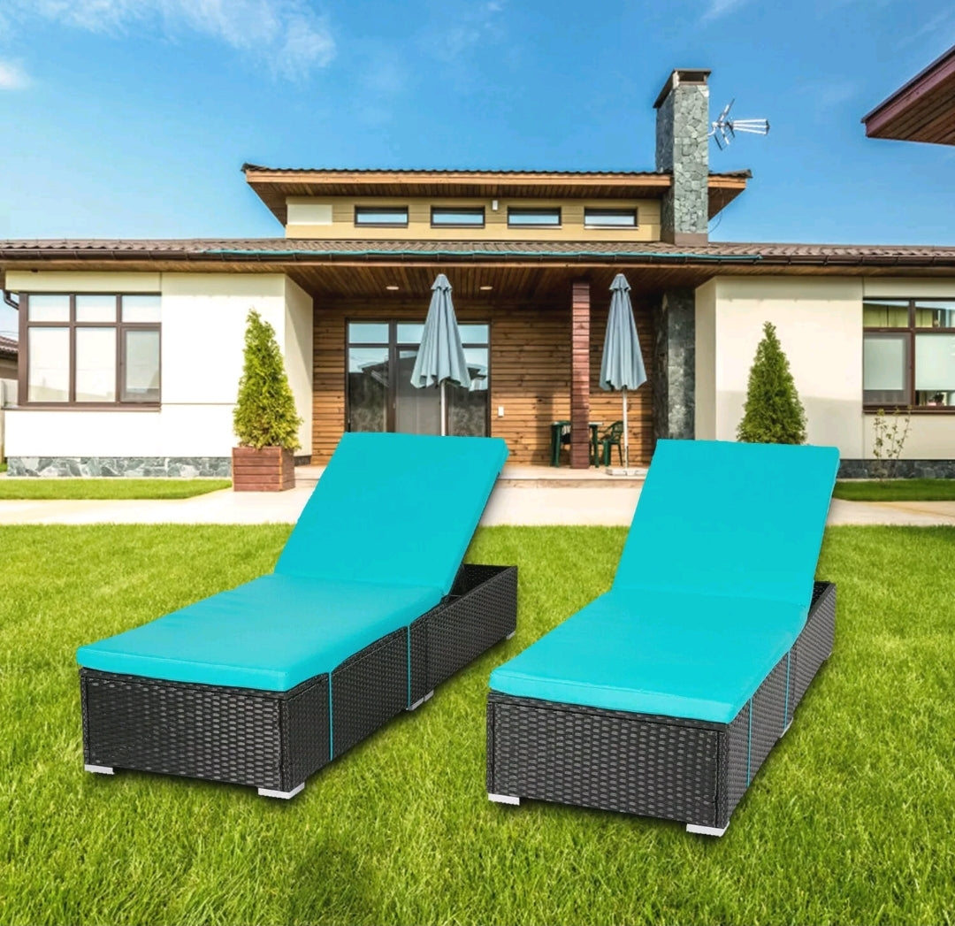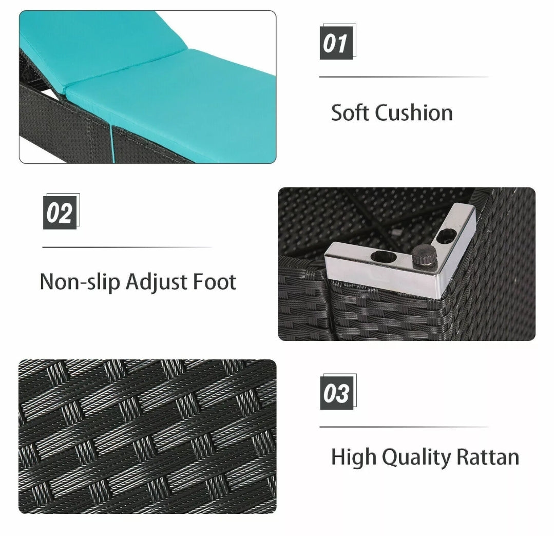 2 PC PE Wicker Chaise Lounge Adjustable Chair W/ Cushion Pool Outdoor Furniture
