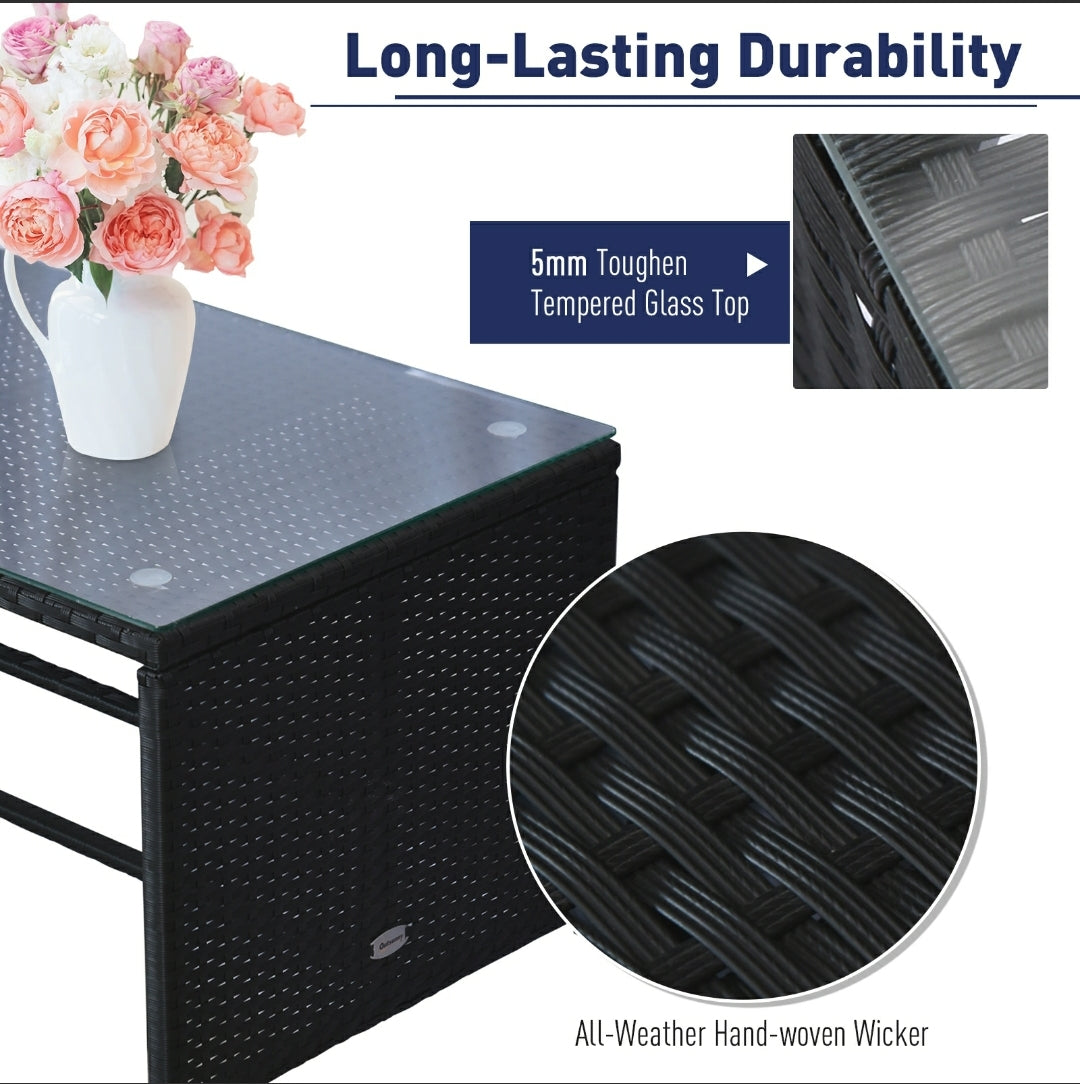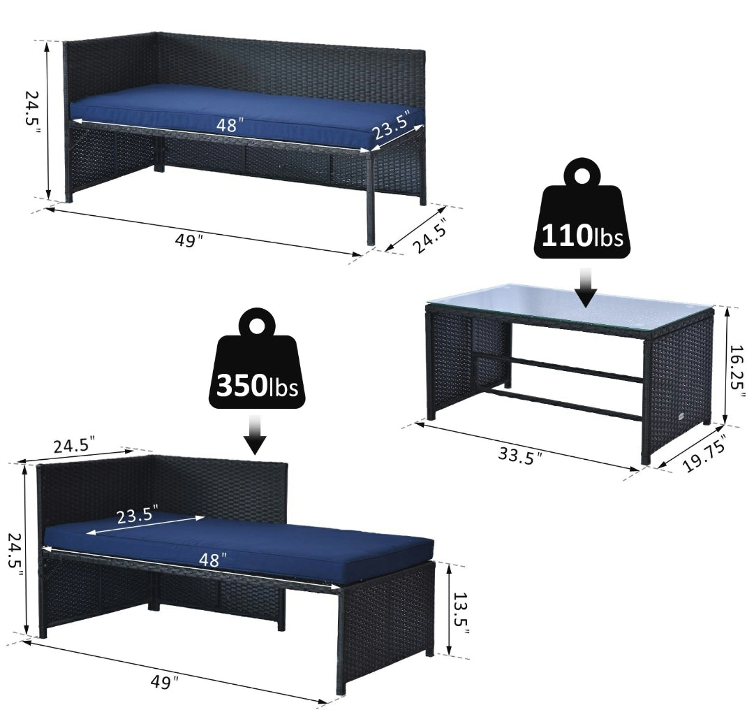 3- Black Piece Patio Furniture Set Rattan Sectional Wicker Sofa Lounger