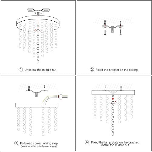 - Warm Tips: Need assembly and Easy to Install. Before Installing, cleaning lamps or replacing light bulbs, must cut off power supply. Please note that hanging the crystal strings on the hook of the lamp plate will need some patience and time. A detailed mounting instructional manual included.
