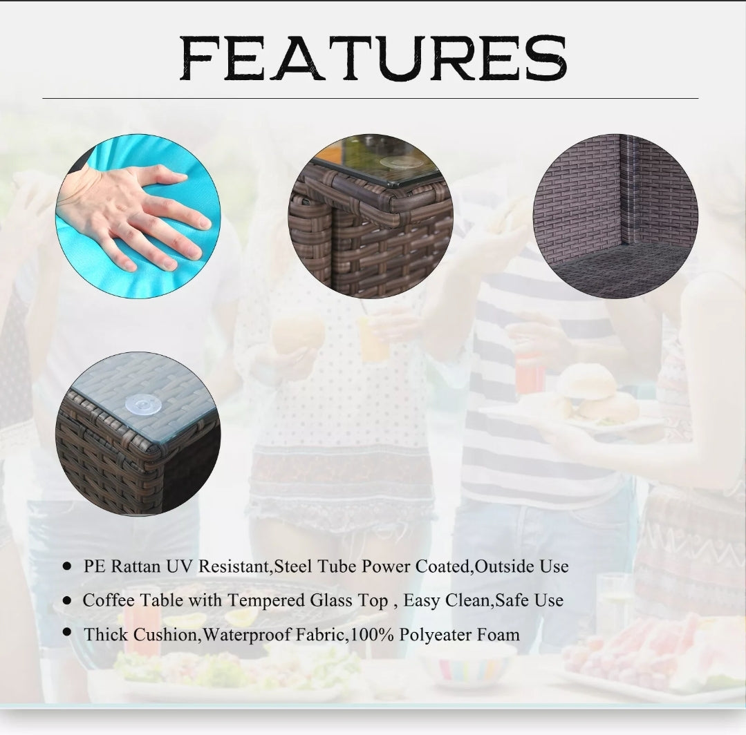 - Material : Polyester Fabric+High-density foam+PE Rattan Wicker+Heavy Sturdy Frame