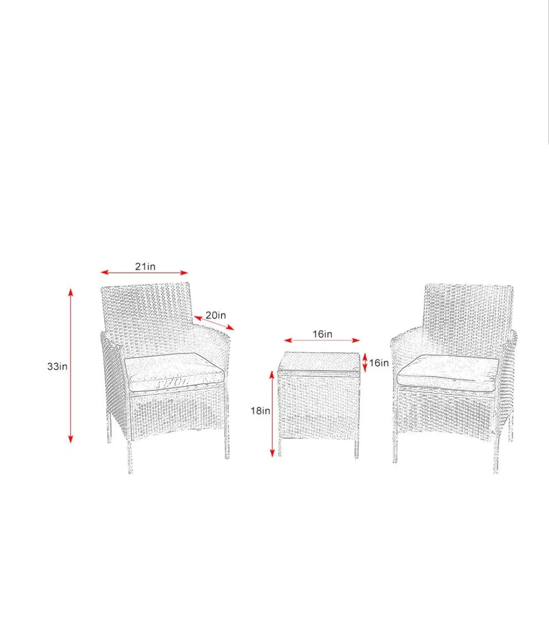 - Single Sofa: 21.5inch(W)X 19.5inch(D) X 33.5inch(H) Table: 16inch(W)X 16inch (D) X 17inch (H).