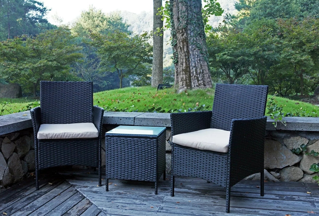 - Patio bistro sets comes with 2 single sofas w/cushions, and 1 table with tempered glass.