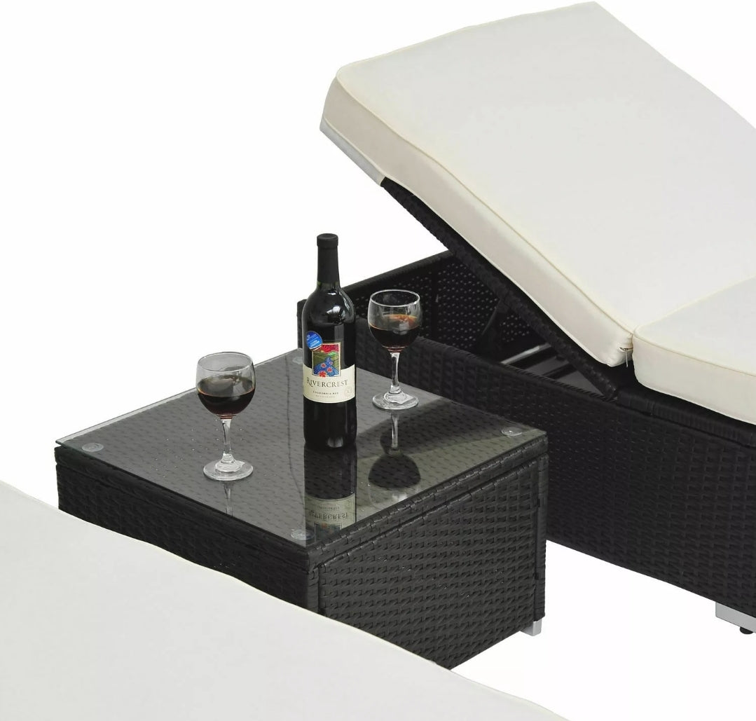3PC Rattan Wicker Chaise Lounge Chair Set Outdoor Patio Garden Furniture Pool