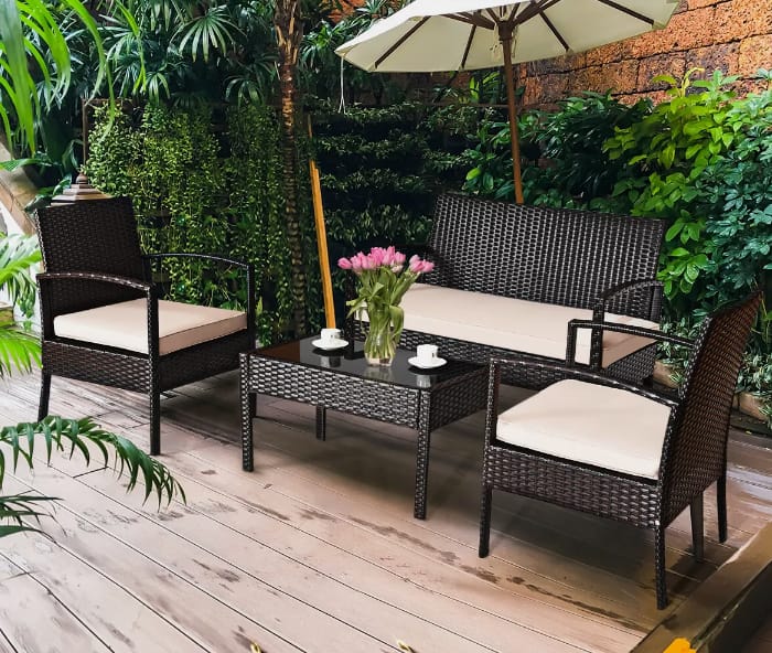 - Elegant and Comfortable- 4-Piece Wicker set will transform your outdoor area into a cozy private retreat