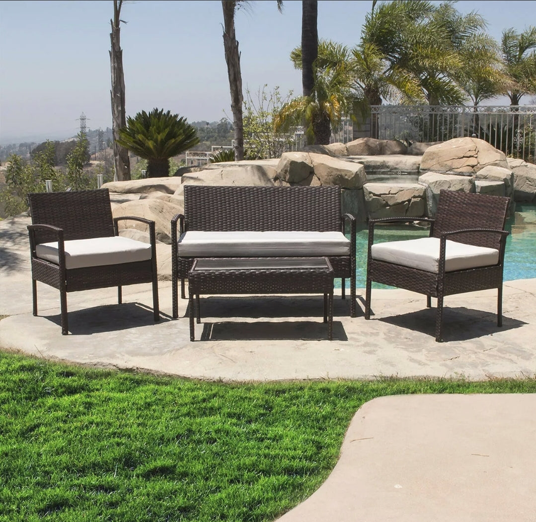 4PCS Brown Outdoor Rattan Wicker Patio Set Garden Lawn Sofa +Chair Furniture Cushioned