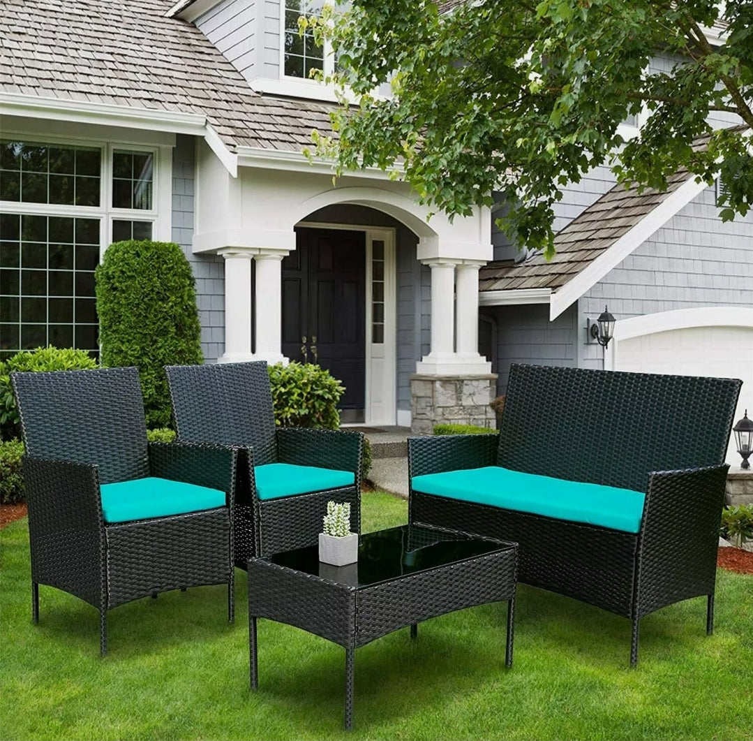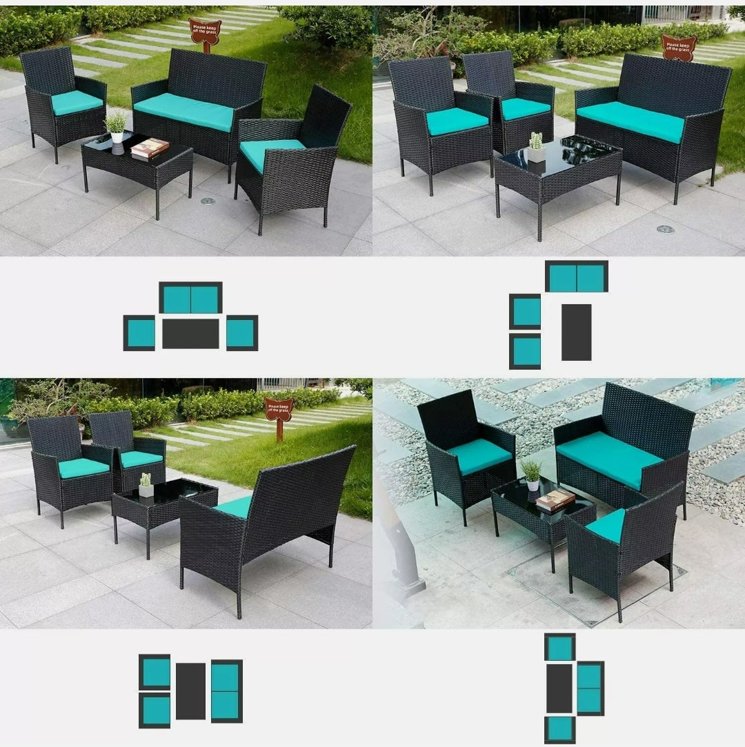 FURNITURE 4 PIECE SET Includes 1 double sofa and 2 single armchairs, provides 4 seats and 1 table for versatile patio furniture that can be matched in different ways to match your house! We provide clear instructions and all necessary hardware for easy assembly