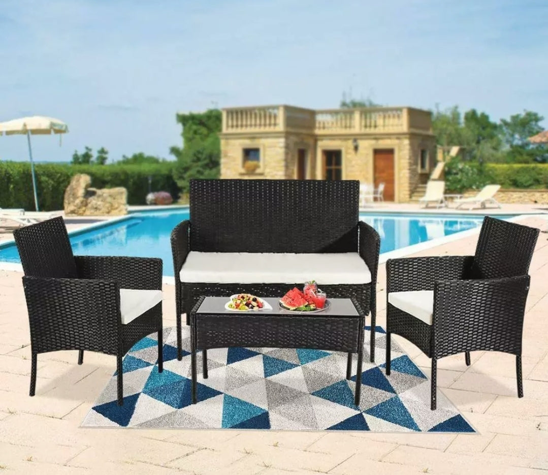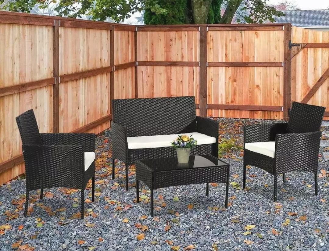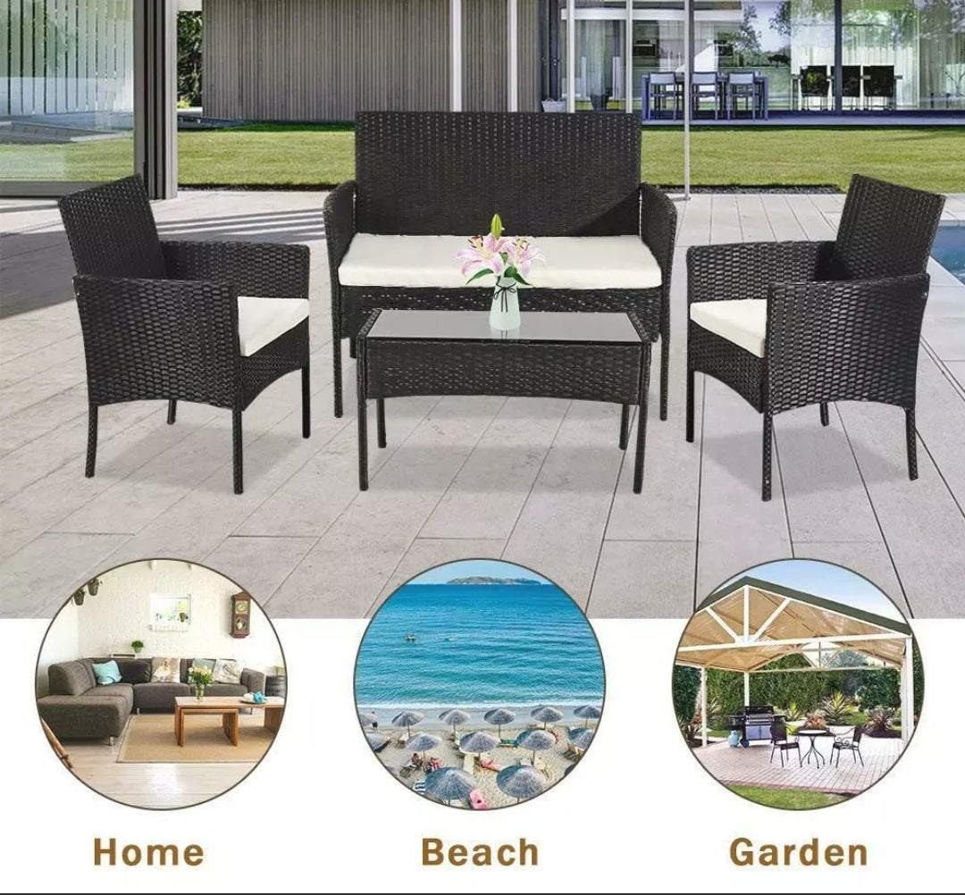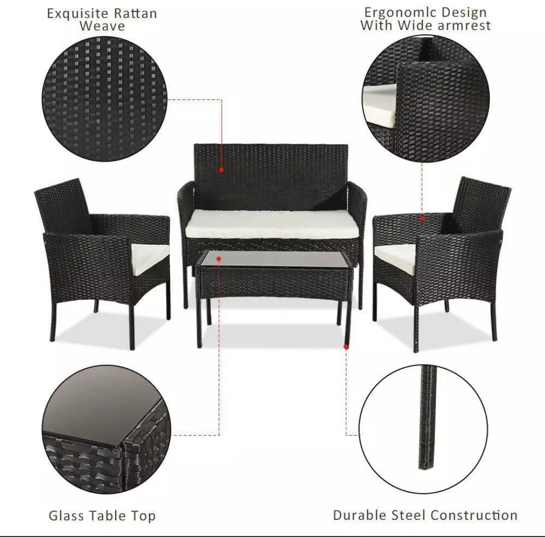 4Pcs Black Rattan Garden Furniture Set Patio Outdoor Table Chairs Sofa Conservatory BN