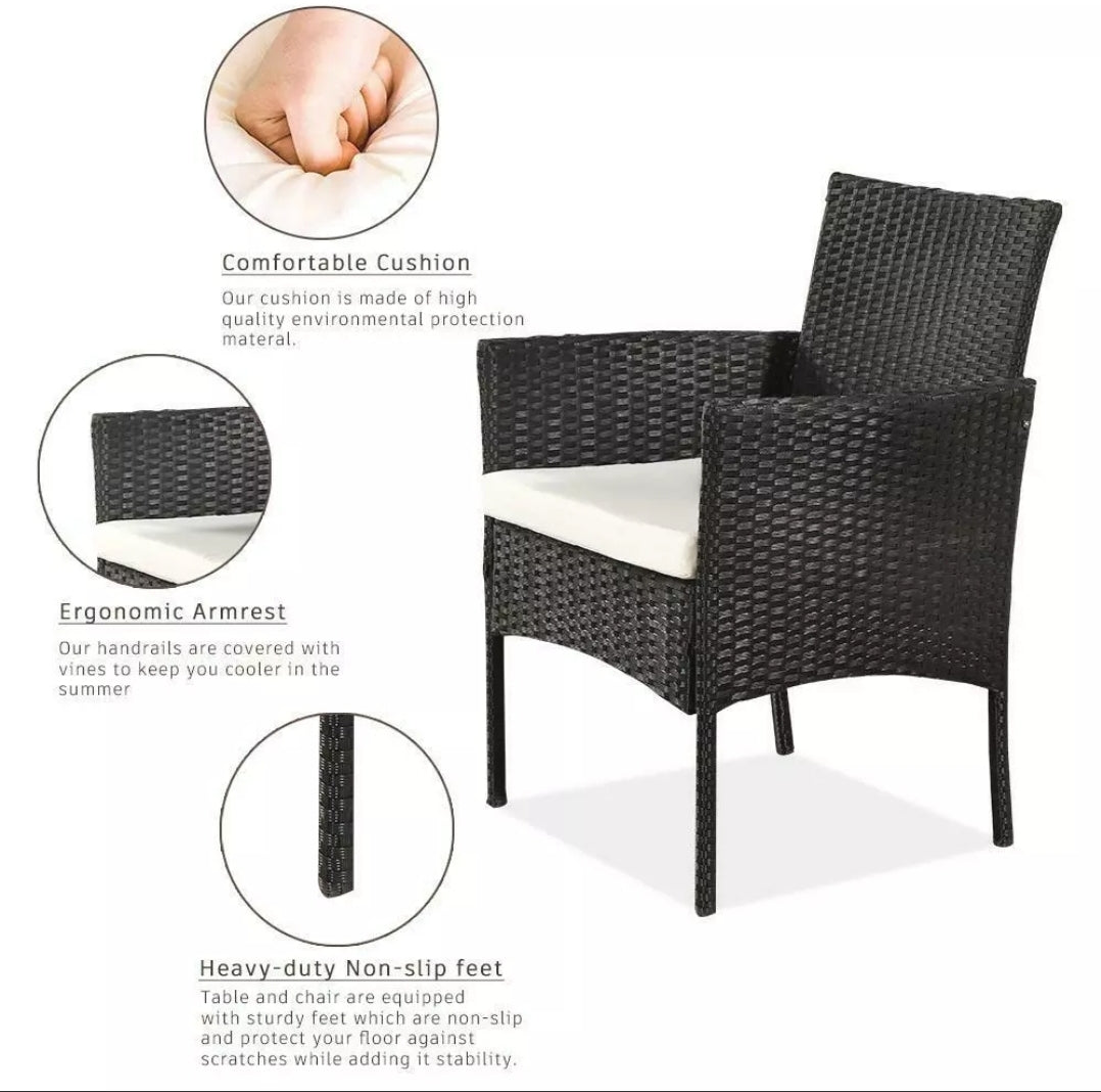 【Sturdy & Attractive】 Constructed from strong powder coated steel frame and commercial grade hand woven weather-resistant PE rattan wicker in a gradient shades of coffee/Black creating a whole new look and feel for your patio set.