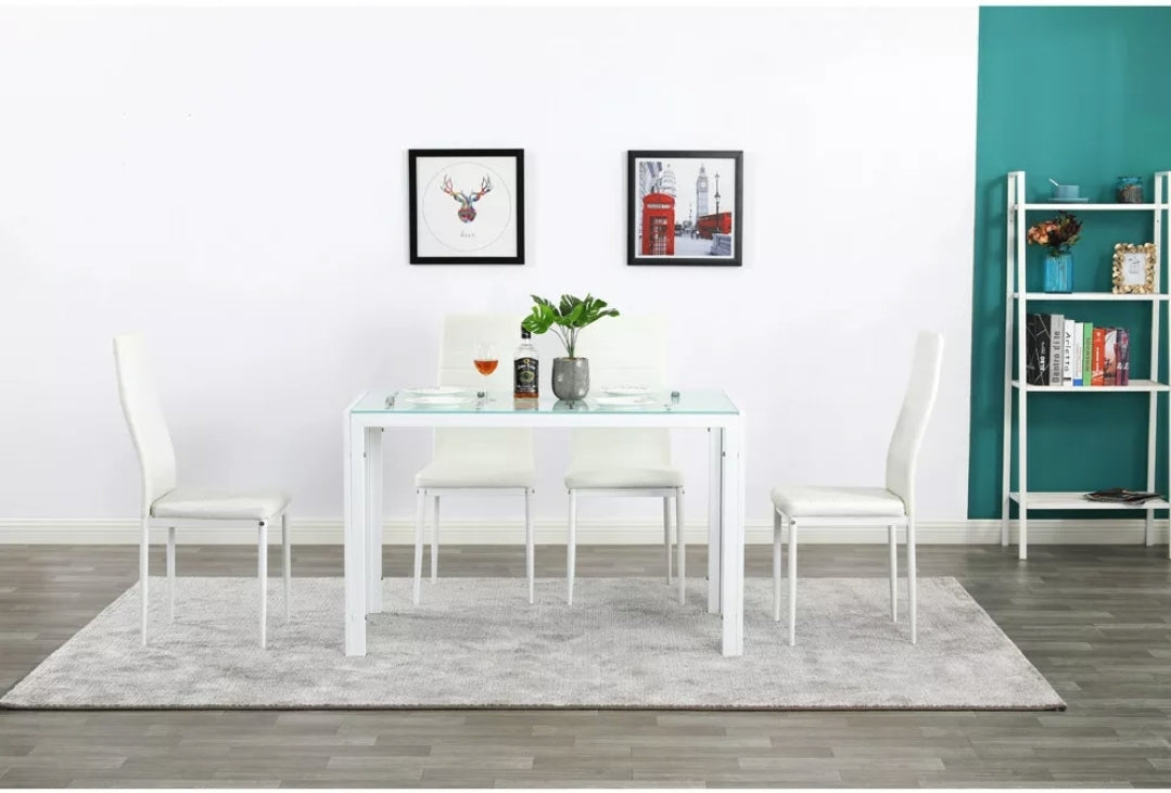 5Pcs Dining Set Kitchen Table Set Dining Table and 4 PU Leather Chairs Black