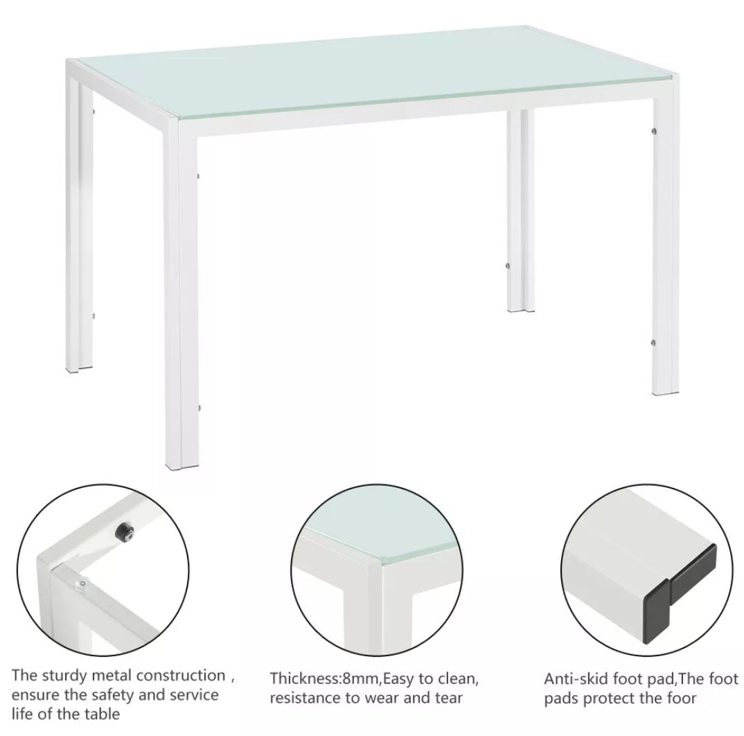 This dinner table allows 6 people to sit around comfortably, which is suitable for kitchens, dining rooms, cafes and homes to use. The sturdy metal construction and 8mm high quality tempered glass ensure the safety and service life of the table. Meticulous rounded corners are designed to ensure the safety of the product. The simple frame structure and smooth surface make your cleaning easier. The stains on the table can be cleaned quickly, which reduces your worry. The tempered glass dinner table is not affected by indoor air and will not be deformed due to improper humidity. In addition, it is healthy, environmentally friendly and has no radiation.