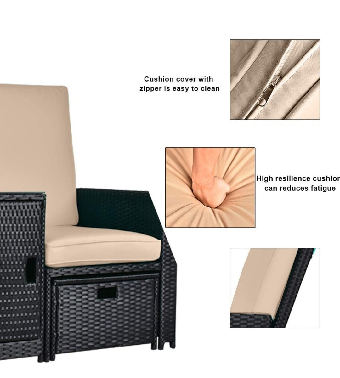 - STRONG STORAGE: it has two ottoman and a coffee table, both of which can be opened and store magazines, cushion and other small stuff.there is a shelving board on the right side of the lounge chair, more space for magazines or drinks and so on
