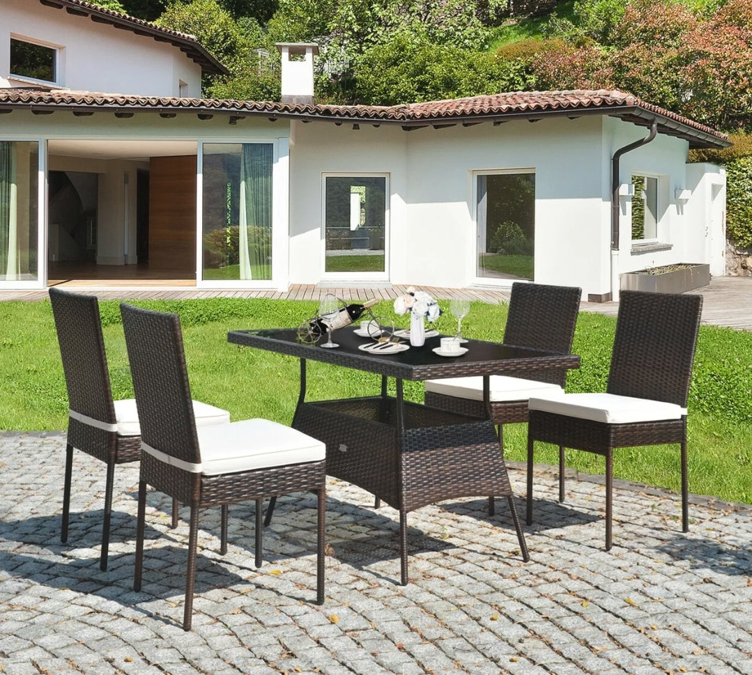 5PCS Rattan Patio Dining Table & Chair Set Outdoor Furniture Set w/ Cushion