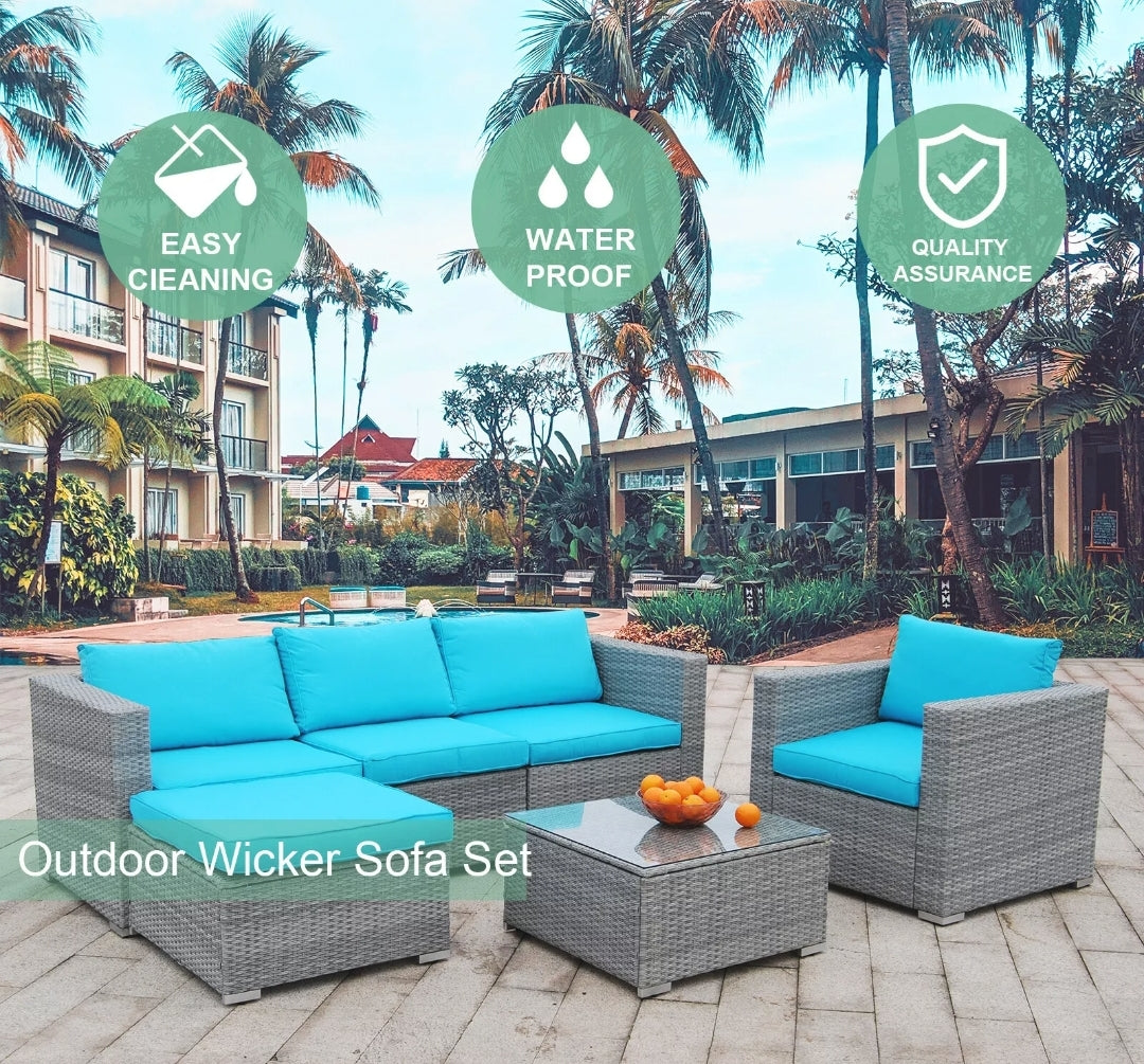 6pcs Patio Furniture Set Rattan Wicker Sectional Outdoor Sofa Set