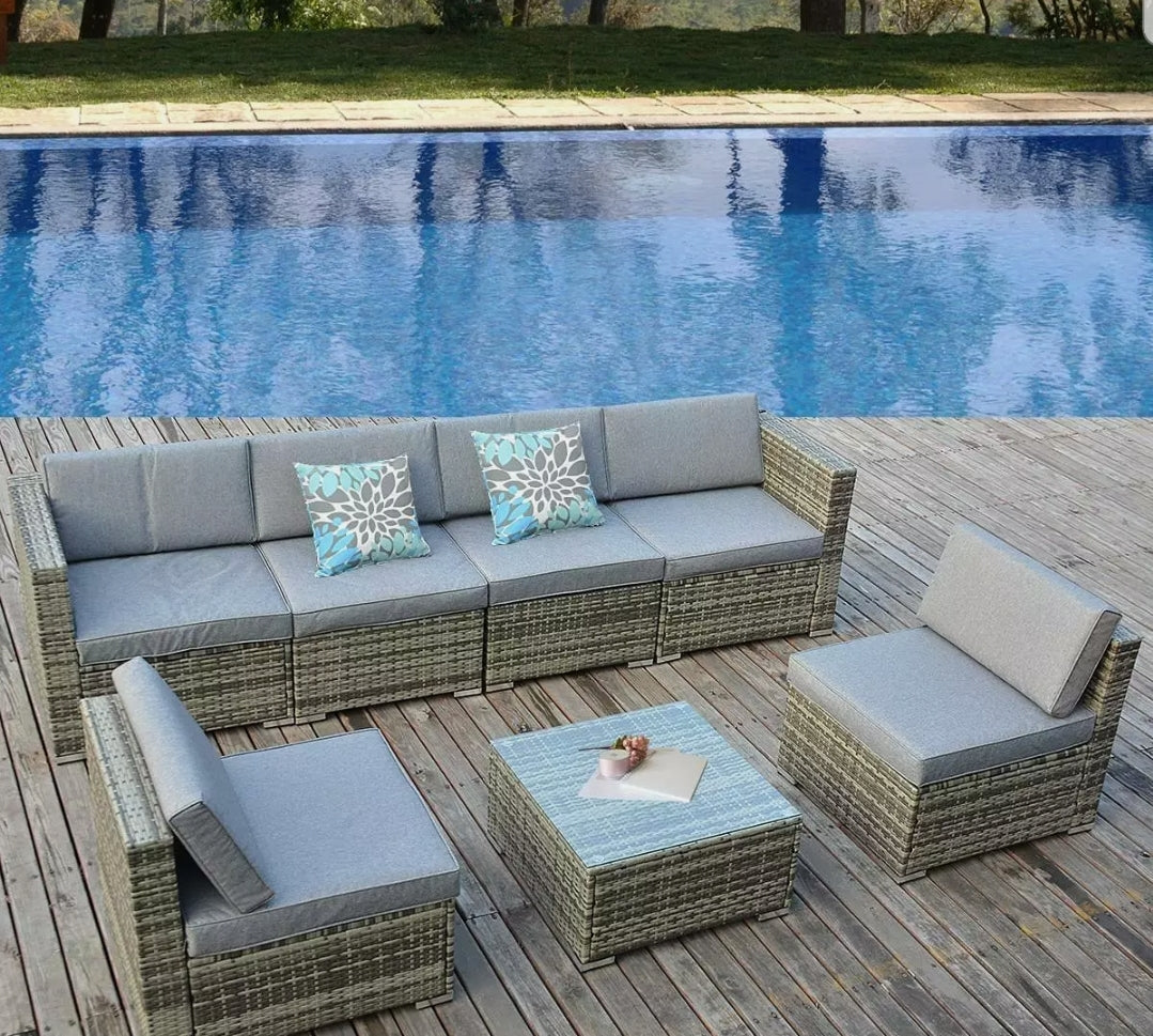 7pcs Outdoor Patio Sofa Gray Wicker / Gray