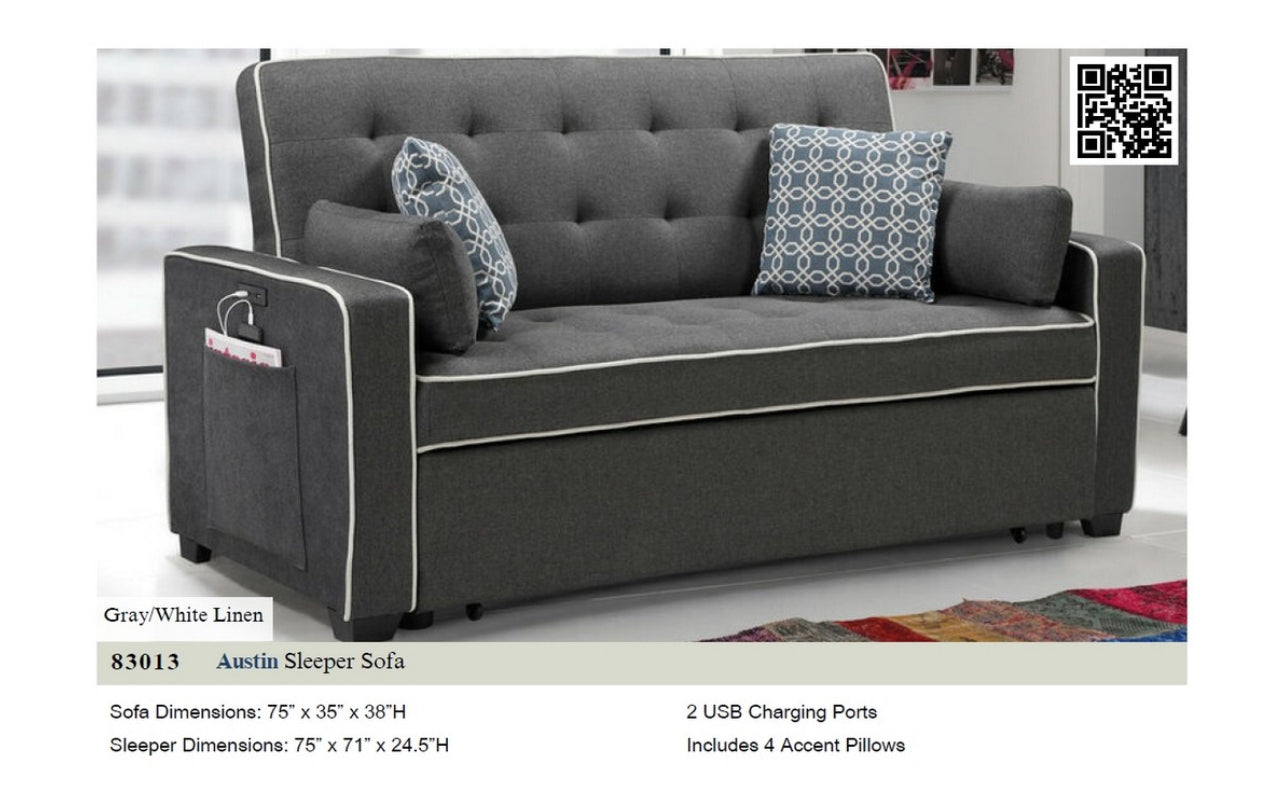83013 Austin Modern Gray Fabric Sleeper Sofa