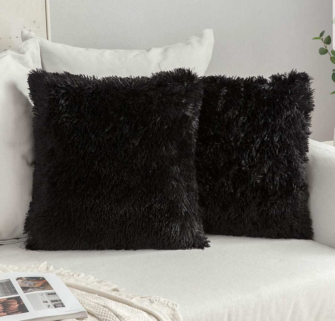 Black Pack of 2 Luxury Faux Fur Fluffy Throw Pillow Covers