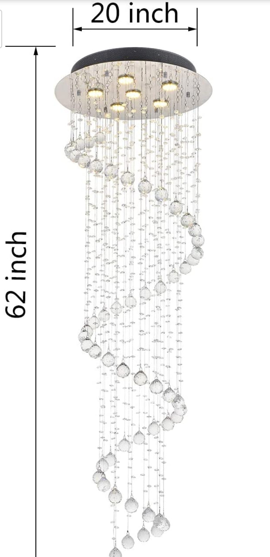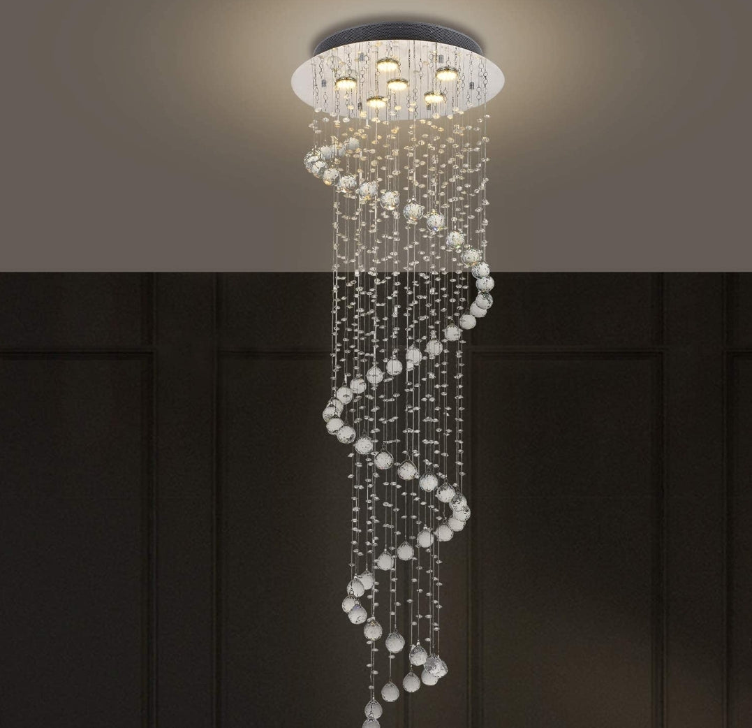 Elegant Spiral Crystal Chandelier Lighting, A1A9 Clear K9 Crystal Raindrop LED Ceiling Lights Chrome Flush Mount