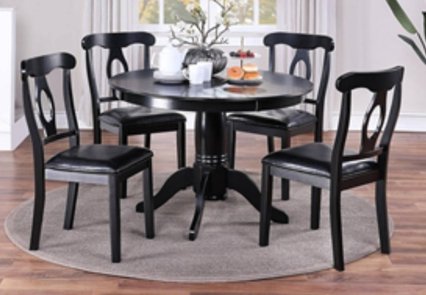 F2561 -|5PCS DINING SET (ROUNG TABLE+4 CHAIRS) BLACK