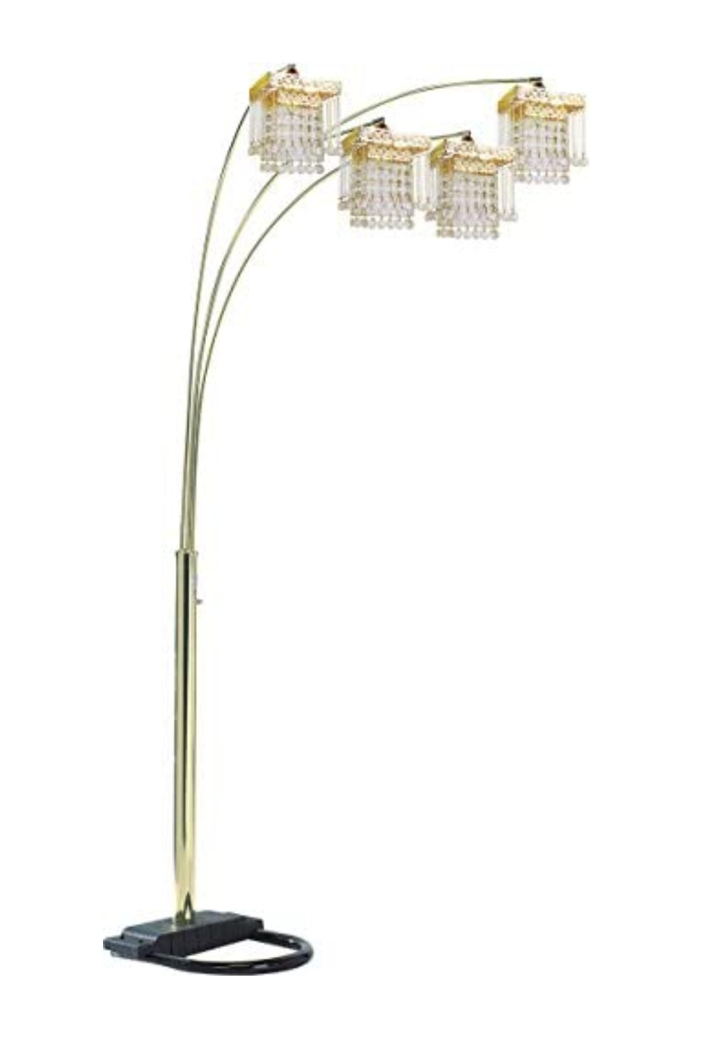- Adjustable arc design with gold accents and cascading artificial crystals will add elegance to your home or office