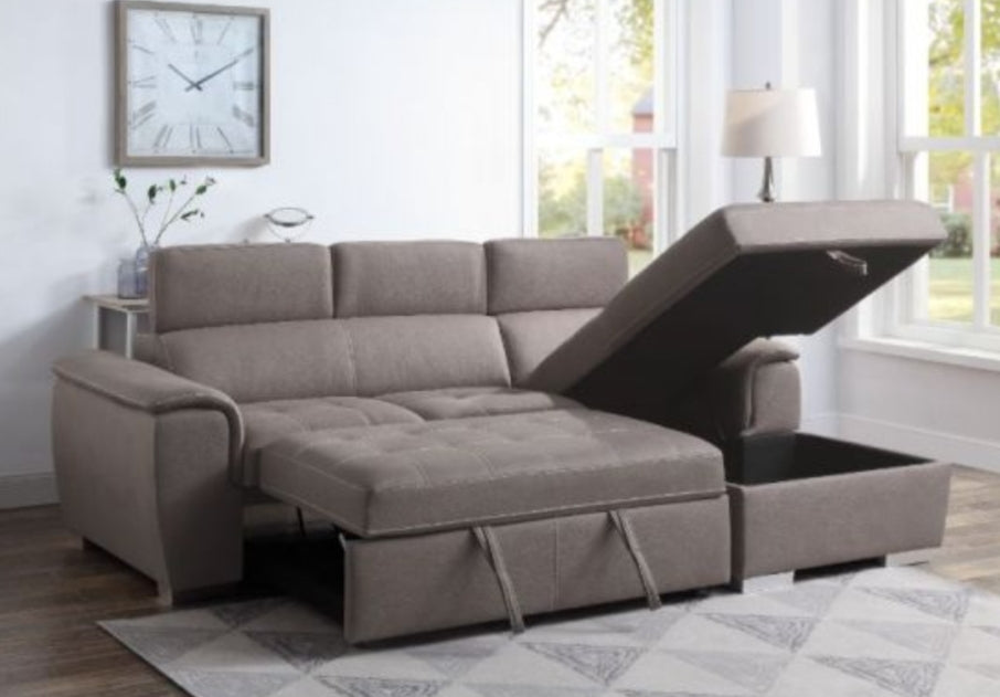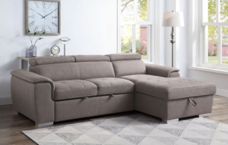 Adjustable Headrest, Storage Chaise, Loveseat with Pull-Out Bed, Pocket Coil Seating, Tight Seat and Back Cushion