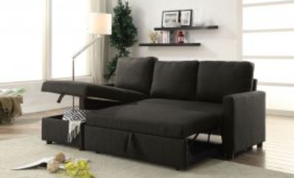 Sometimes clean and simple is merely beautiful to behold. that is the case with this Hiltons sectional sofa. It is contemporary, yet warm and inviting. Upholstered in black linen and filled with full foam cushions, it provides additional comfort while being stylish. Furthermore, with its pull-out sleeper, it gives more functionality to this piece.