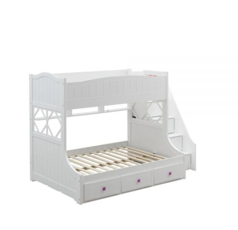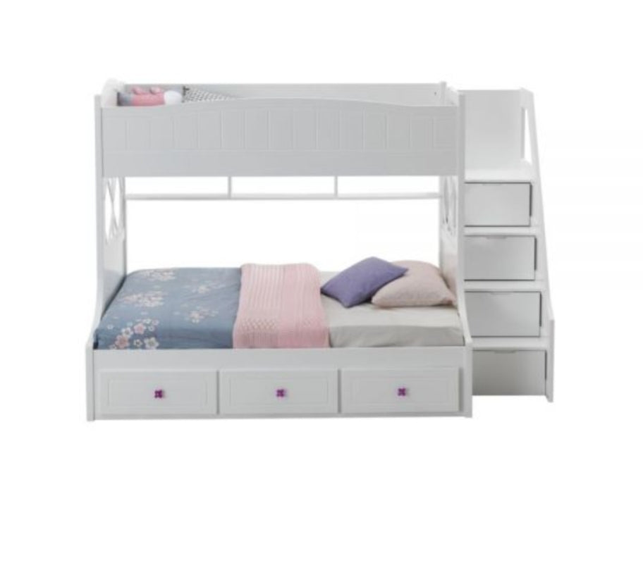 For simplicity and functionality, you can not beat the Meyer bunk bed with trundle bed for that occasional sleepover. It comes with many neat features like a back panel with open shelving for whatever your child might want to keep handy. A sturdy ladder to help your kiddo climb to the top bunk and a full-length guard-rail for extra safety. But all you need to know is the great times your kids will have in their new bedroom. Matching accessories are sold separately.