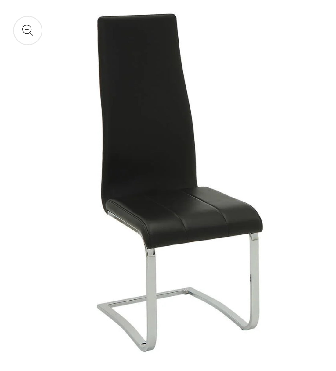 The Anges Collection presents this contemporary dining table. Rectangular table top and supporting column are finished in trendy white for an airy brightness. Unique chrome finish base at foot of table adds shine to breakfast or lunch. Add great comfort and style with iconic breuer style chairs (sold separately) to top off the set. Chairs come in black or white leatherette to customize your dining room ambiance.