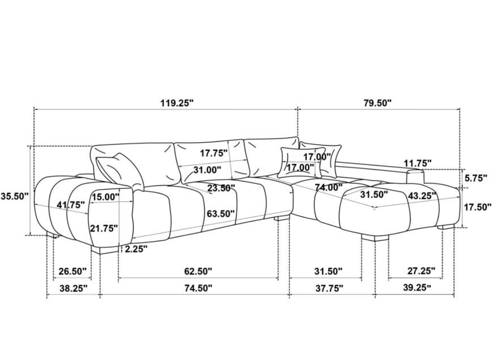 OCTAVIA UPHOLSTERED SECTIONAL CHAISE SOFA BLACK