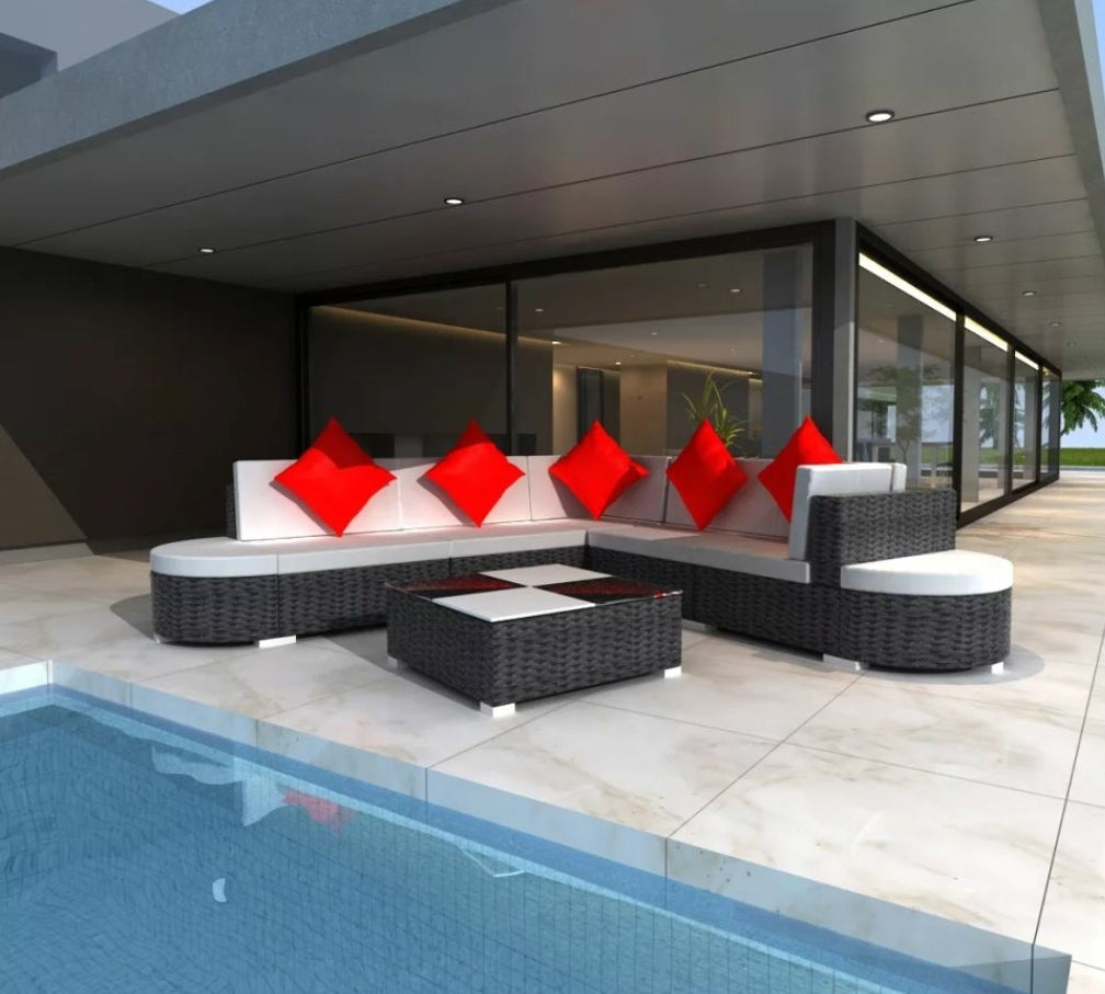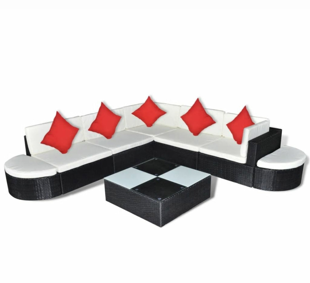 Outdoor Lounge Set Wicker Poly Rattan Black Garden Patio Sofa