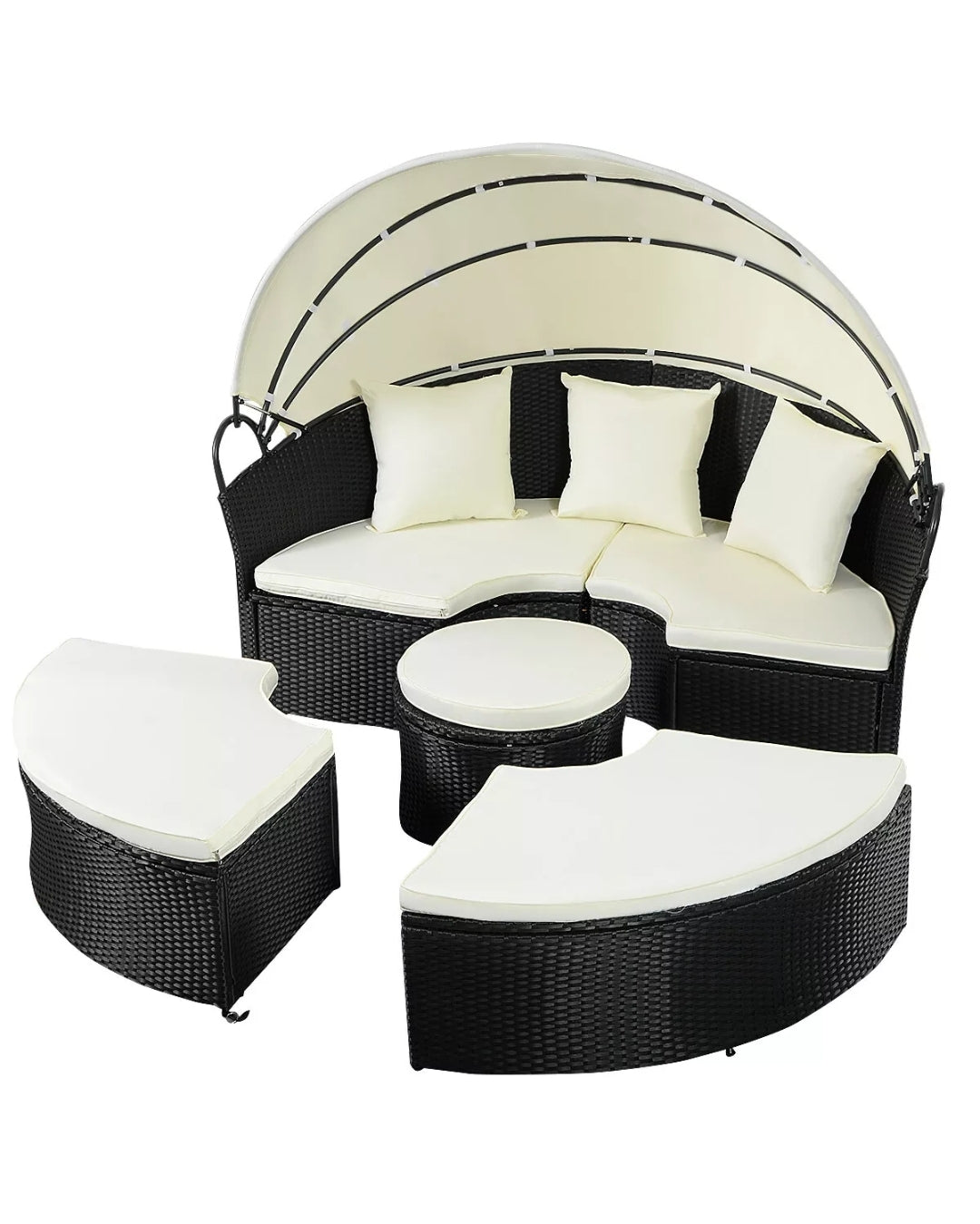Patio Sofa Round Bed Wicker Rattan Furniture Retractable Sunshade Outdoor