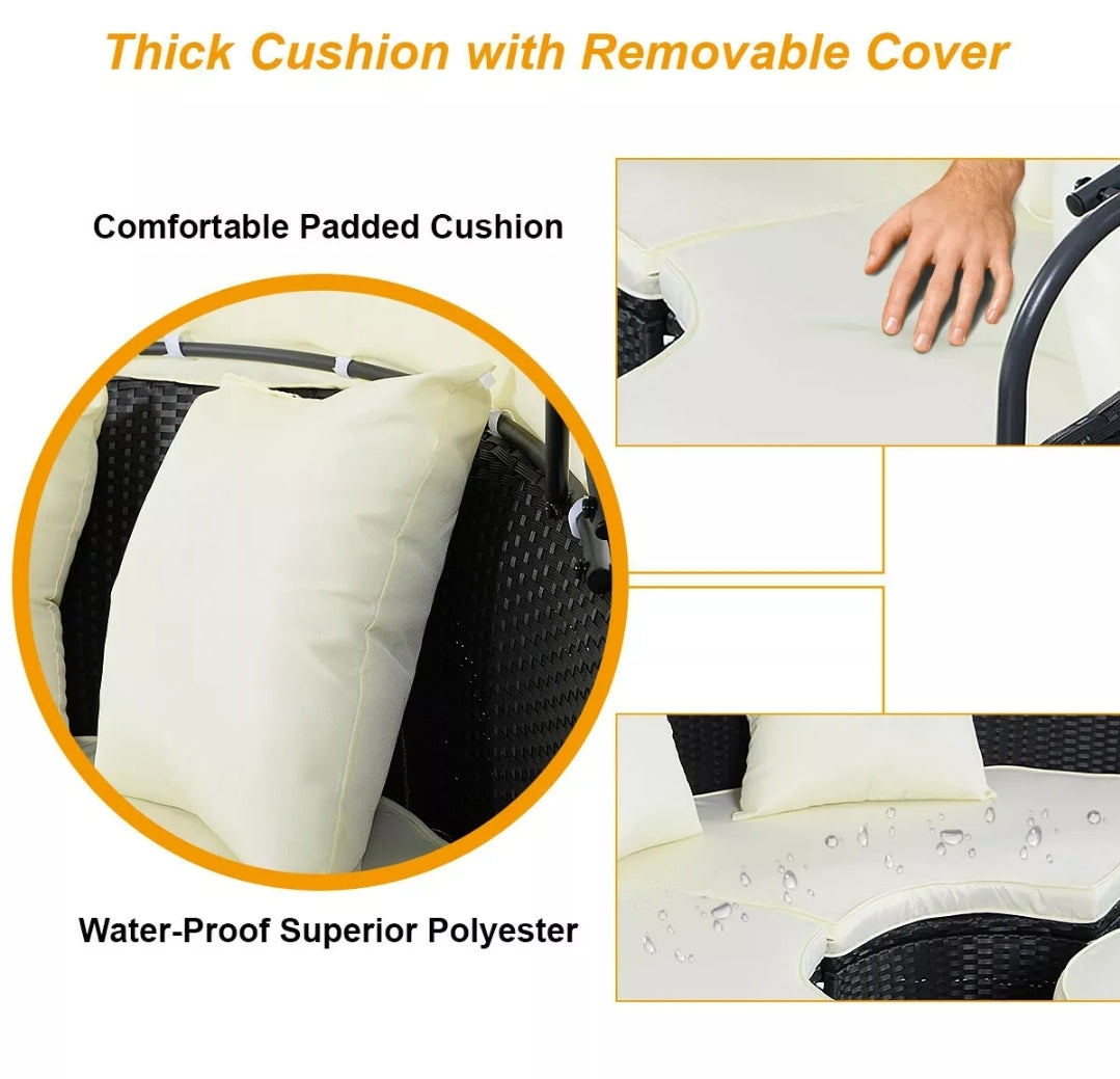 *Unique Design Wicker with cream cushions and retractable sunshade.
