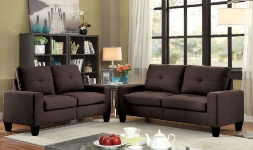 Create a unique look to your home with the Platinum II collection. This sofa combines clean, classic lines with retro details, like tufted back and seat cushion and wood-like tapered legs. The sleek, boxy cushions and slim track arms allow you to slouch back in comfort. Also available Red PU, beige and gray linen, this stylish look is perfectly for any room environment.