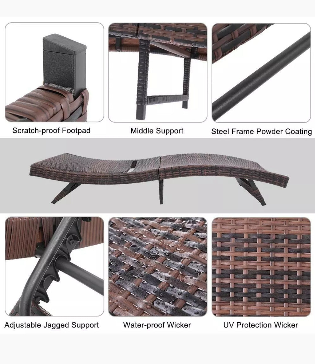 Ratton Adjustable Chaise Lounge Chair Patio Beach Wicker