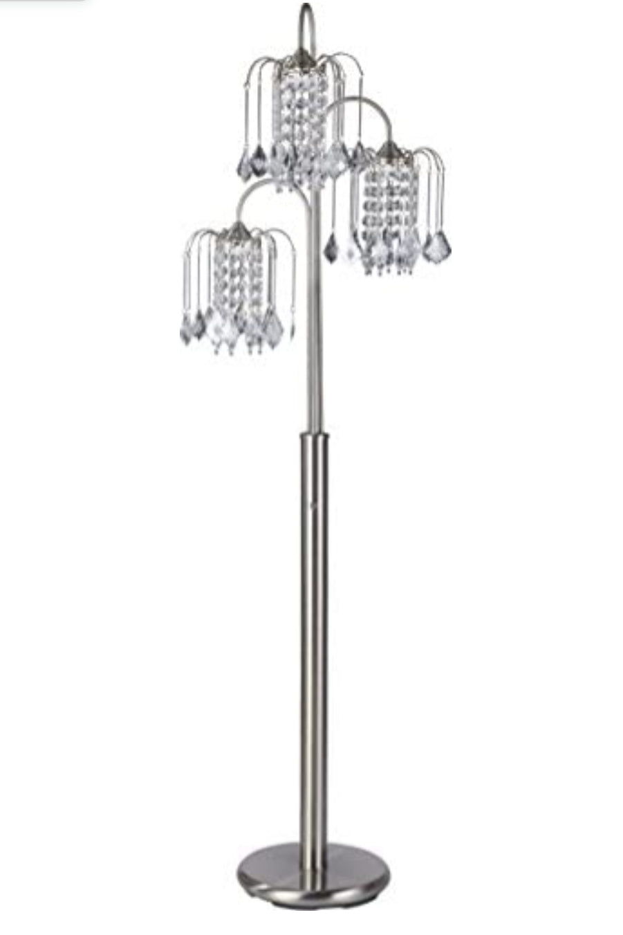 SH Lighting 6866SN Three-Tiered Adjustable Hanging Faux Crystal Floor Lamp, 17" x 17" x 63", Brushed Steel