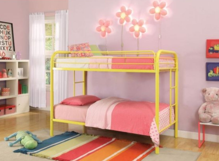 The Thomas twin over twin bunk bed is an amazing space saver, will make a wonderful addition to your children's room. Superior quality metal for durability, built-in side ladders for easy access, and full length guard rails for safety. Choose from a variety of colors, makes it compatible with all types of decor settings.